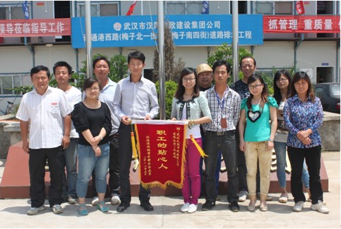 武漢天創(chuàng)市政建設(shè)工程有限公司行政部獲連通港西路項(xiàng)目部贈(zèng)予 “職工的貼心人”榮譽(yù)錦旗 。