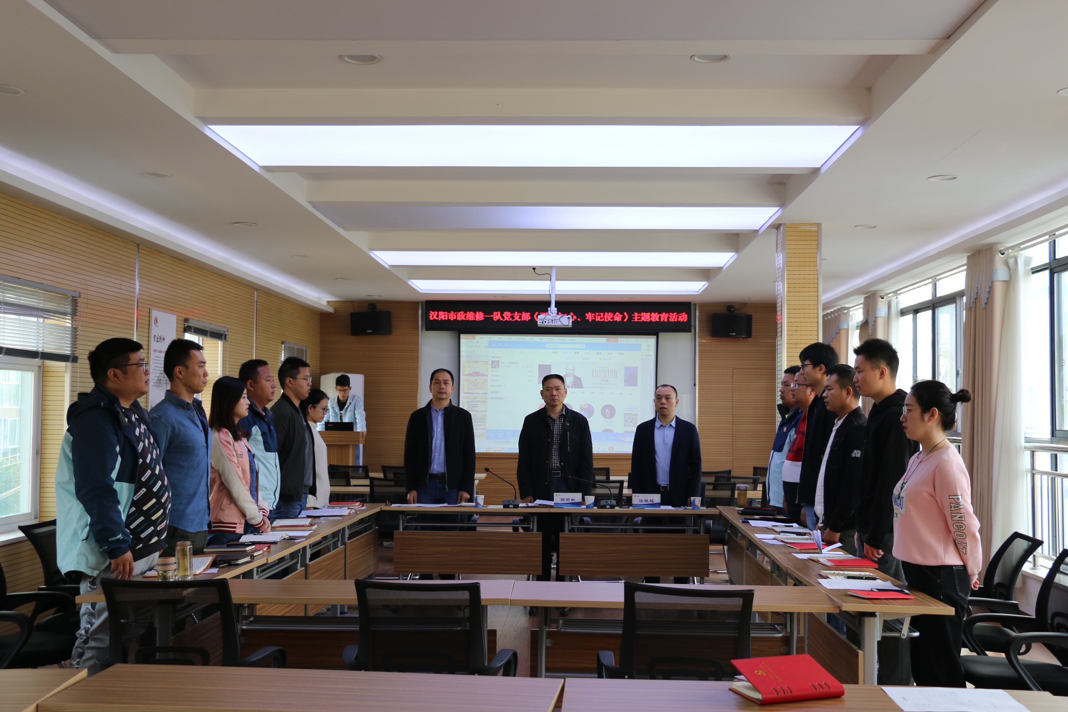 為扎實(shí)深入開展“不忘初心、牢記使命”主題教育,根據(jù)區(qū)委及集團(tuán)黨委的部署要求,結(jié)合本隊(duì)實(shí)際,11月8日上午,維修一隊(duì)黨支部召開了“不忘初心,牢記使命”專題黨日活動(dòng),漢陽市政集團(tuán)公司副總經(jīng)理邢榮斌應(yīng)邀蒞臨現(xiàn)場(chǎng)。