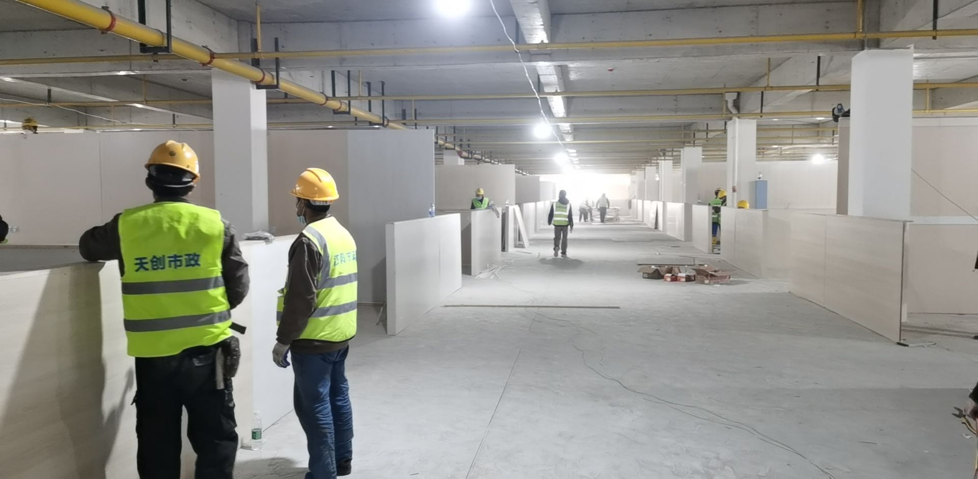? ? ? 盡管任務(wù)艱巨,但漢陽市政人迎難而上,在周密部署下,現(xiàn)場人員全力以赴,實行兩班倒24小時晝夜施工。截至2月19日下午5時,床位隔離設(shè)施、醫(yī)護人員進出通道、護士監(jiān)測間、衛(wèi)生間等建設(shè)任務(wù)已基本完成,目前正在進行清掃收尾工作,預(yù)計今日交付驗收。