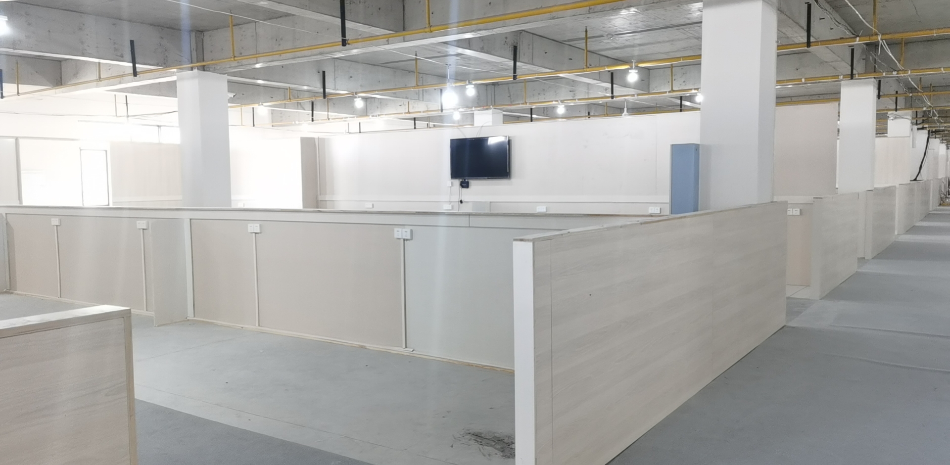 ? ? ? 為了順利完成任務(wù),2月16日清早,休息不足4小時的項目人員便趕忙開始進行第一階段的施工,并于17日凌晨完成4層樓共計280張隔板、28扇門的施工,為確保第二階段施工能盡早開始,完工的4層樓當晚便與院方進行交接,經(jīng)驗收合格。2月17日,病人正式入住。