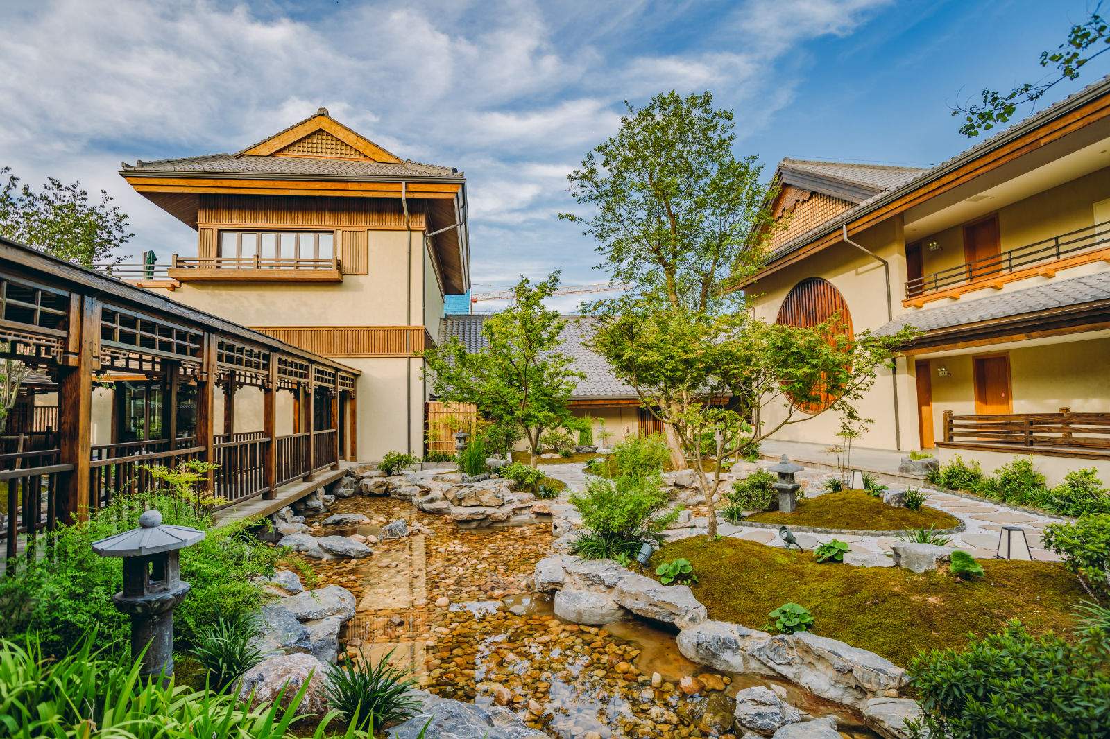 該項(xiàng)目位于黃梅縣東山腳下,五祖寺景區(qū)內(nèi),項(xiàng)目總用地面積約13萬(wàn)平方米,總建筑面積約5.2萬(wàn)平方米。項(xiàng)目包括菩提精舍、禪意商街、禪居客棧等功能區(qū)。作為景區(qū)內(nèi)第一目的地,它是一座游覽景區(qū),也是一座產(chǎn)業(yè)社區(qū),還是一座創(chuàng)意產(chǎn)業(yè)園區(qū);可觀光旅游,又可安家入住,可旅游度假,又可創(chuàng)業(yè)就業(yè),是集朝拜、祈福、修禪、休閑、度假、生態(tài)有機(jī)產(chǎn)業(yè)等功能于一體,特質(zhì)鮮明卻又高度開(kāi)放包容的泛小鎮(zhèn)。建筑中,融入了無(wú)我、無(wú)相、無(wú)限、出世、寂靜、超然六大禪意要素,將東方禪意中的含蓄包容、寧?kù)o淡泊體現(xiàn)其中,使整個(gè)建筑彰顯崇尚自然、親近寂定、肅穆嚴(yán)整、空相悠遠(yuǎn)的禪意空間精神。