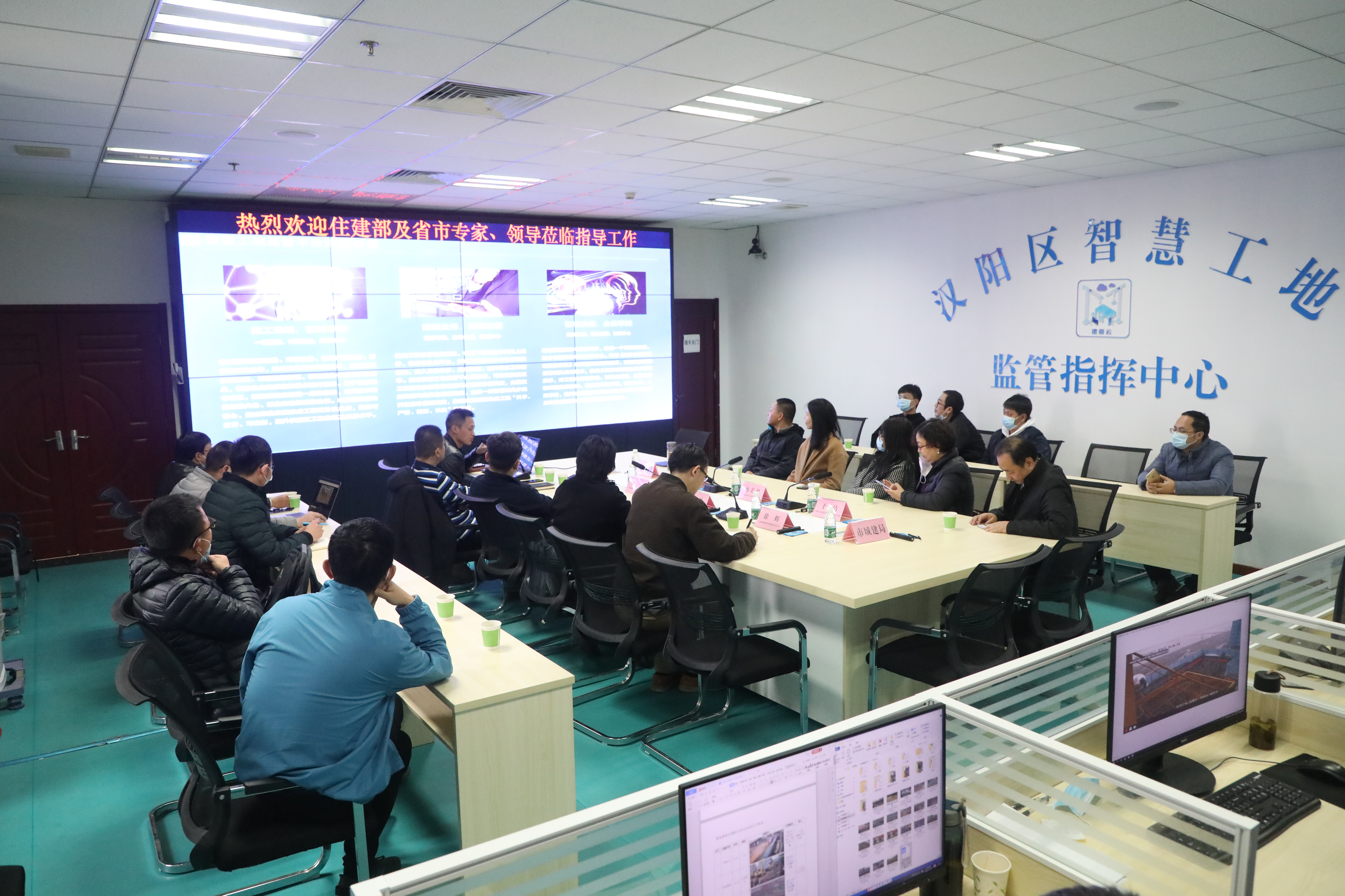 11月26日下午,住房和城鄉(xiāng)建設(shè)部建筑節(jié)能與科技司會(huì)同工業(yè)和信息化部、中央網(wǎng)信辦相關(guān)司局組成的調(diào)研組蒞臨漢陽市政智慧工地指揮中心,對(duì)漢陽區(qū)智慧工地監(jiān)管大數(shù)據(jù)平臺(tái)進(jìn)行調(diào)研指導(dǎo)。漢陽市政建設(shè)集團(tuán)總工程師荊武陪同調(diào)研。