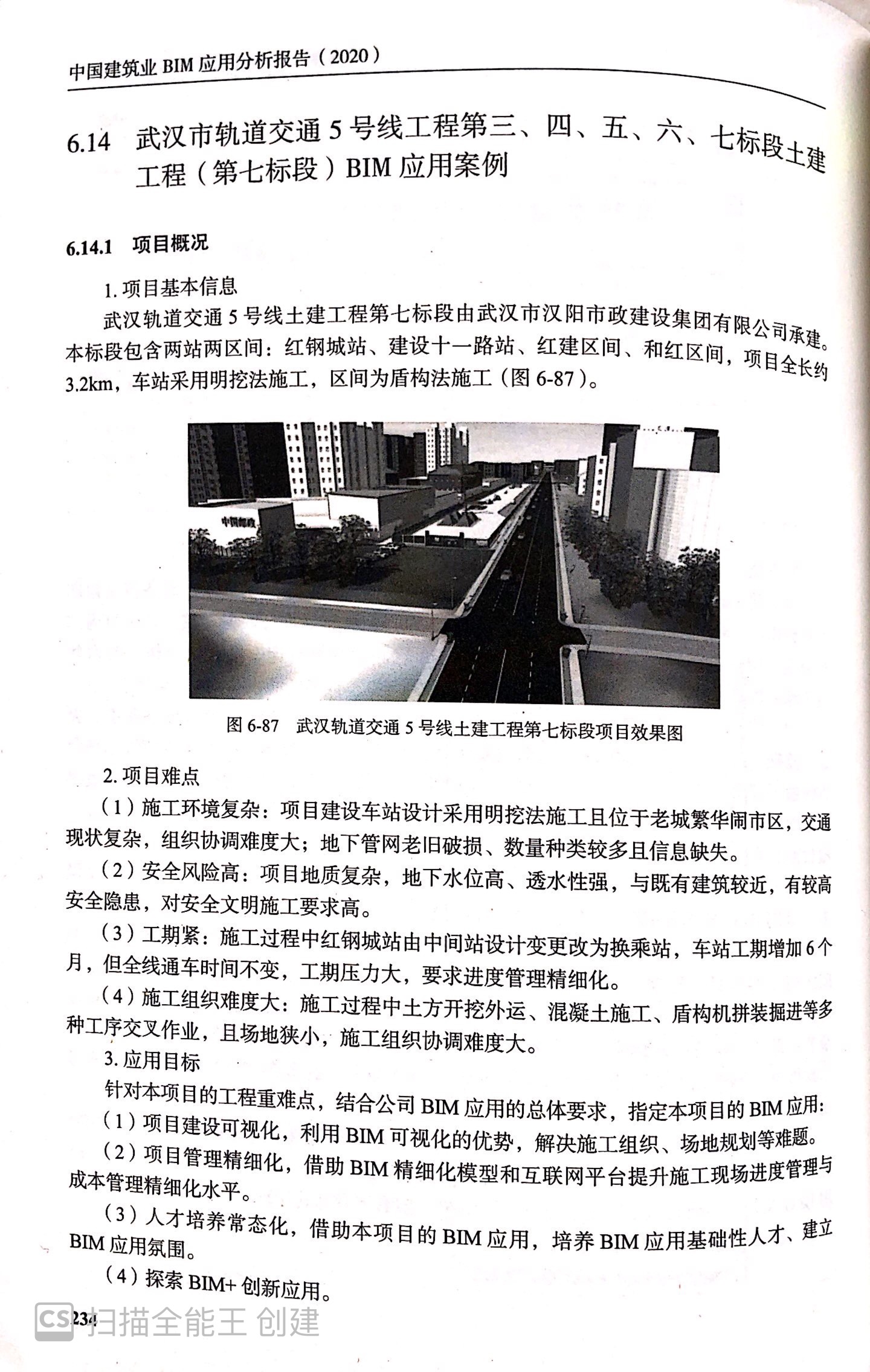 《報告》第6章BIM技術(shù)應(yīng)用典型案例匯編章節(jié)中,以漢陽市政四公司承建的“武漢市軌道交通5號線第七標(biāo)段土建工程BIM技術(shù)應(yīng)用成果”為典型案例,進(jìn)行展示與分析。此章節(jié)從項目概況、BIM應(yīng)用方案、BIM實施過程、BIM應(yīng)用效果總結(jié)四個方面,對5.7標(biāo)項目BIM技術(shù)應(yīng)用情況進(jìn)行了全面且詳細(xì)的介紹。