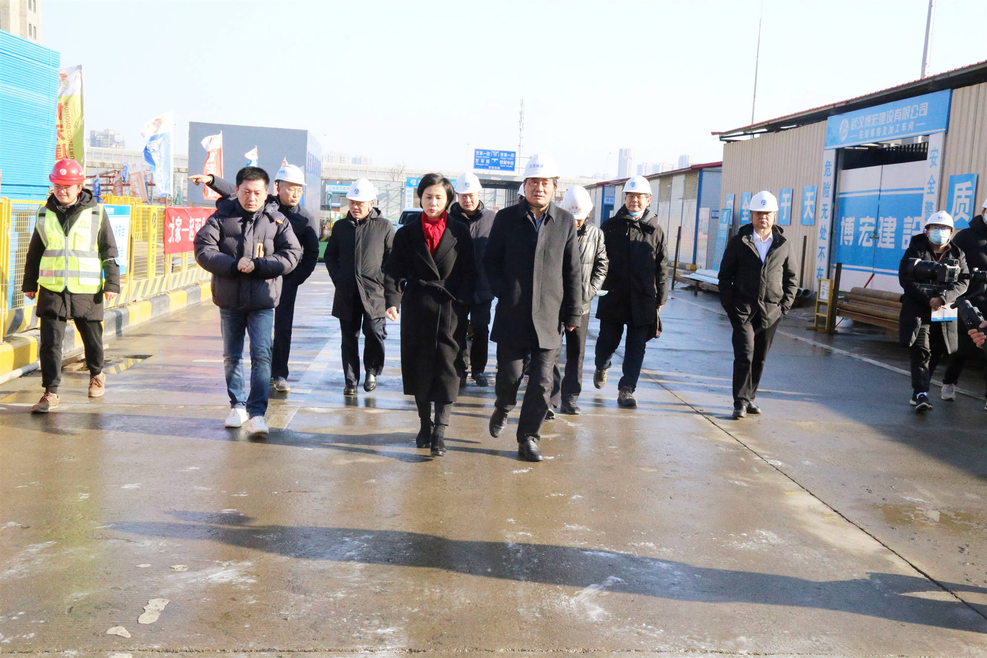12月30日上午,由漢陽市政博宏公司承建的漢陽市政建設大廈迎來一次工地現(xiàn)場安全生產(chǎn)檢查,這是漢陽“工地革命”調研工作的第一站。武漢市城建局黨組書記、局長夏平,黨組成員、副局長榮先國,質安處、建管處、安全站主要負責人;漢陽區(qū)委書記徐麗,區(qū)政府副區(qū)長蔡松,區(qū)建設局等相關單位負責人參加調研檢查,漢陽市政黨委書記、董事長嚴悌文等陪同調研。