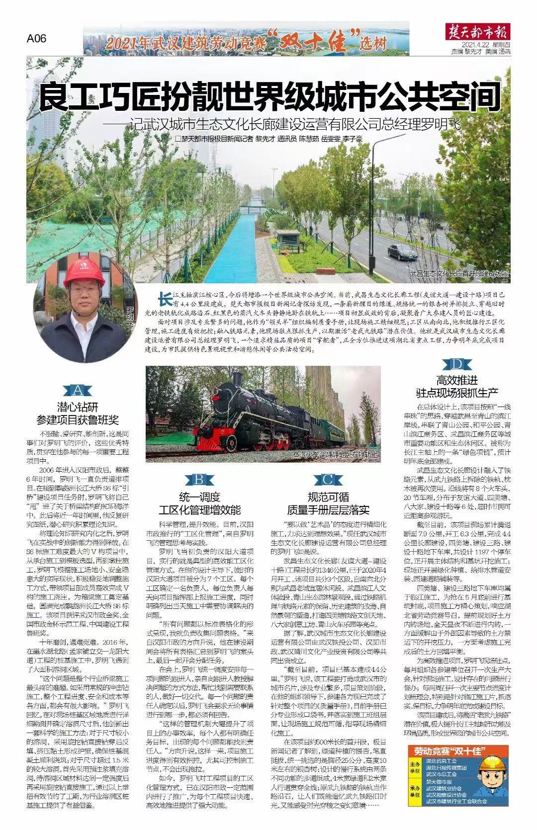 楚天都市報(bào)報(bào)道專(zhuān)版報(bào)道武漢城市生態(tài)文化建設(shè)運(yùn)營(yíng)有限公司總經(jīng)理羅明飛。