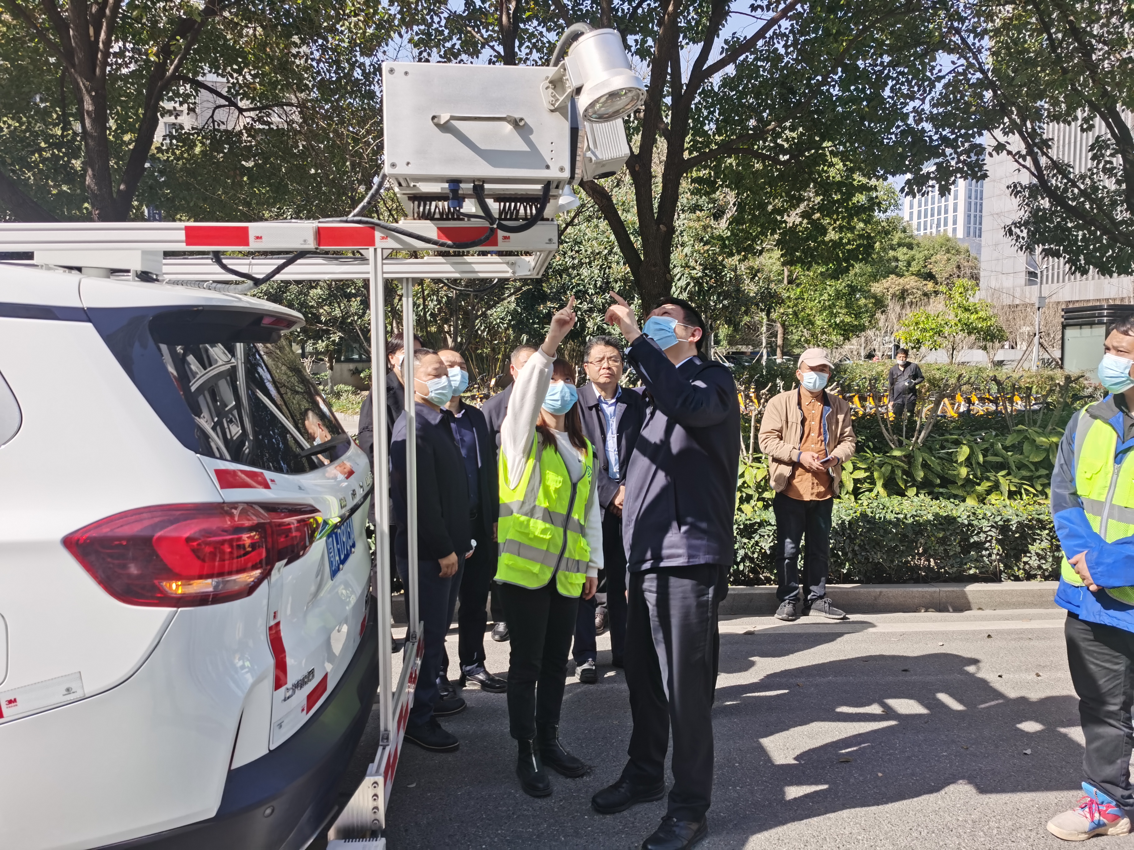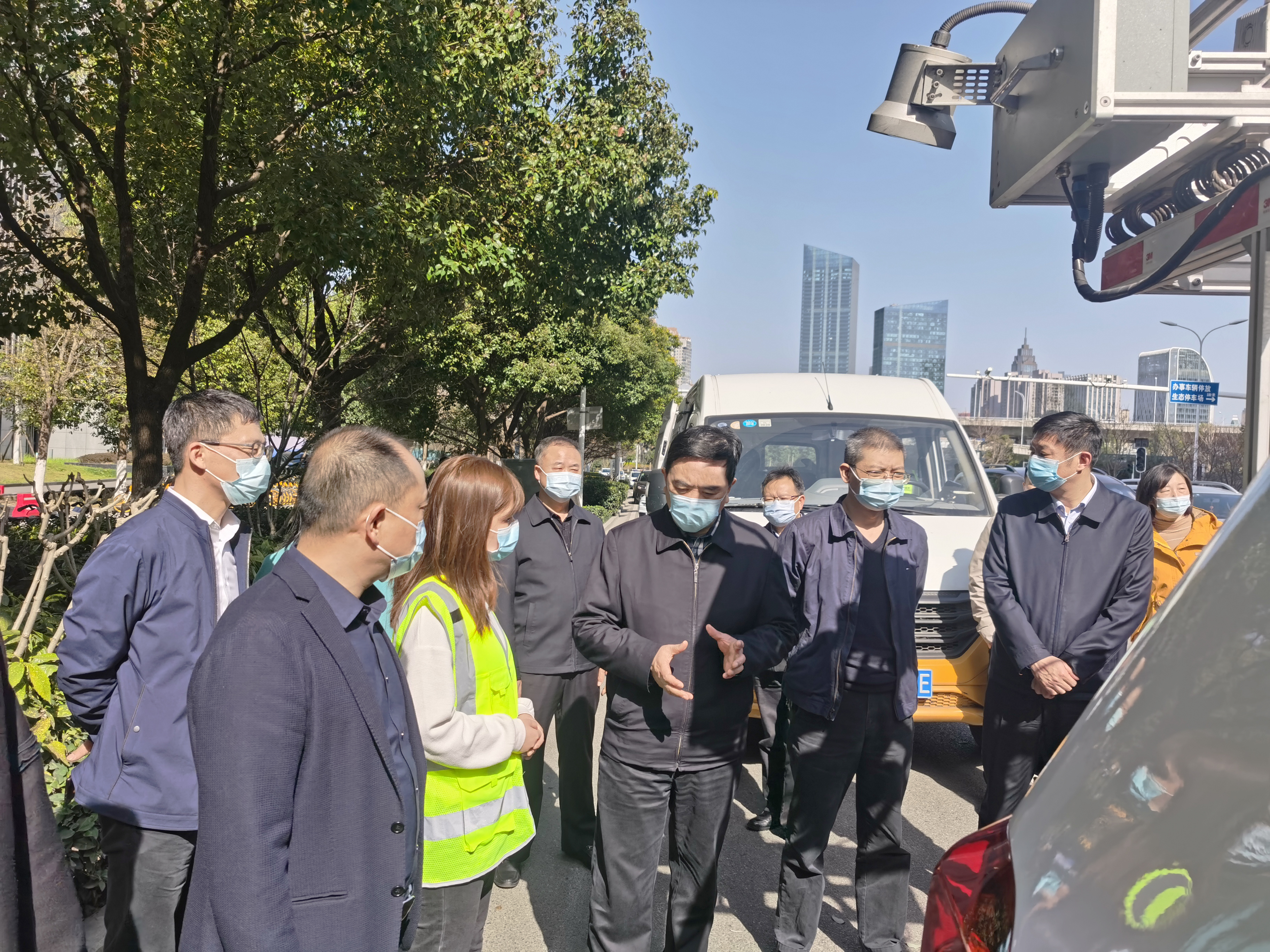 ? ? 3月8日下午,湖北省住建廳黨組書記李昌海,武漢市城建局黨組書記、局長張灼,副局長向暉,武漢市道路維修站站長李華,江漢區(qū)委書記李湛、區(qū)長葉文靜,江漢區(qū)城管局黨委書記、局長于躍茹一行對道路檢測車運(yùn)行實(shí)況進(jìn)行調(diào)研。漢陽市政總工程師荊武、六公司總經(jīng)理涂軼銘陪同調(diào)研。檢測公司結(jié)構(gòu)與運(yùn)維安全事業(yè)部負(fù)責(zé)人對三維雷達(dá)檢測車、道路綜合檢測車以及落錘式彎沉檢測車作出詳細(xì)介紹。