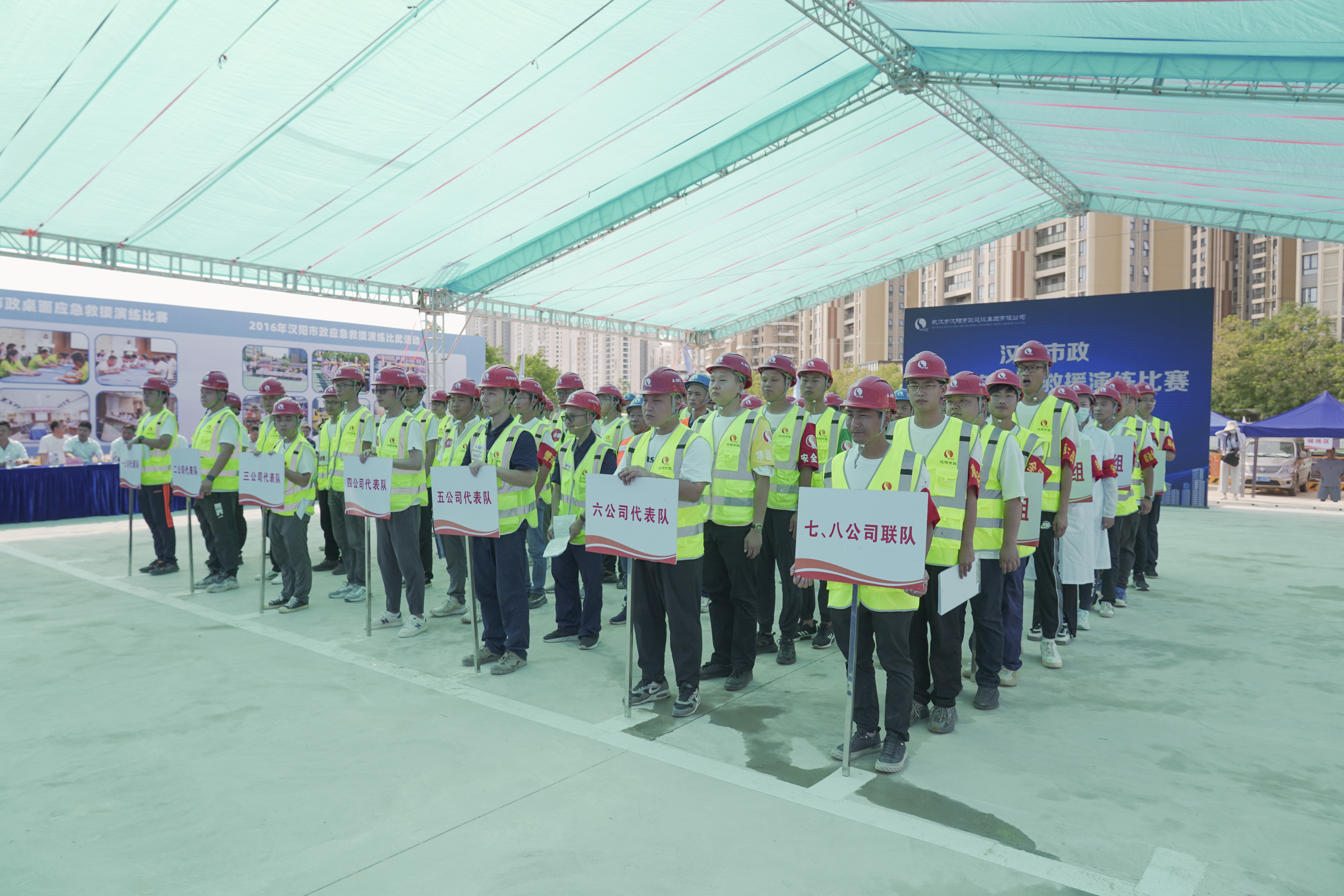 6月27日上午,漢陽(yáng)市政在漢江南岸綜合治理項(xiàng)目部開(kāi)展2022年安全應(yīng)急救援技能比武大賽。本次比賽由武漢市漢陽(yáng)區(qū)國(guó)有資產(chǎn)監(jiān)督管理局主辦,漢陽(yáng)市政承辦、天創(chuàng)建設(shè)協(xié)辦。湖北省建設(shè)工程質(zhì)量安全監(jiān)督站站長(zhǎng)楊碧華、湖北省住房和城鄉(xiāng)建設(shè)廳質(zhì)安處副處長(zhǎng)帥元新、武漢市城鄉(xiāng)建設(shè)局質(zhì)安處廉新斌、武漢市建設(shè)工程安全監(jiān)督站閻鵬,漢陽(yáng)區(qū)應(yīng)急管理局局長(zhǎng)李漢光、區(qū)建設(shè)局局長(zhǎng)胡紅勝、區(qū)國(guó)資局副局長(zhǎng)高明、區(qū)建筑管理站站長(zhǎng)王晟,漢陽(yáng)市政總經(jīng)理王智高、總工程師荊武等出席活動(dòng)。