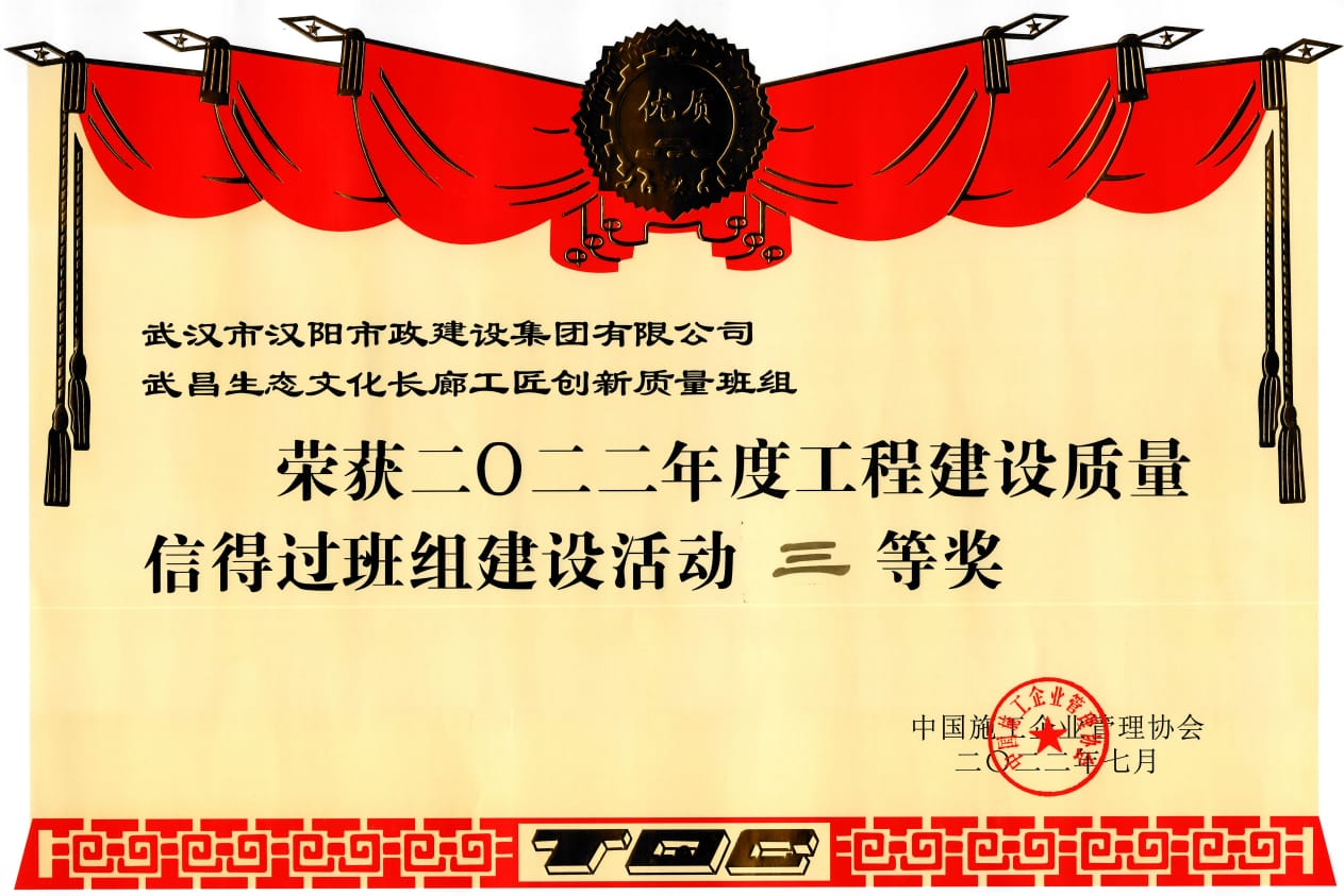 近日,中國(guó)施工企業(yè)管理協(xié)會(huì)公布了2022年工程建設(shè)優(yōu)秀質(zhì)量信得過(guò)班組名單,漢陽(yáng)市政首次參加此類(lèi)活動(dòng),申報(bào)的3個(gè)成果均獲得獎(jiǎng)項(xiàng)。其中,三公司“武漢博宏建設(shè)集團(tuán)有限公司裝修班組”和七公司“當(dāng)陽(yáng)沮河一橋?qū)嵏山ㄔO(shè)班組”榮獲二等班組獎(jiǎng)項(xiàng);二公司“武昌生態(tài)文化長(zhǎng)廊工匠創(chuàng)新質(zhì)量班組”榮獲三等班組獎(jiǎng)項(xiàng)。