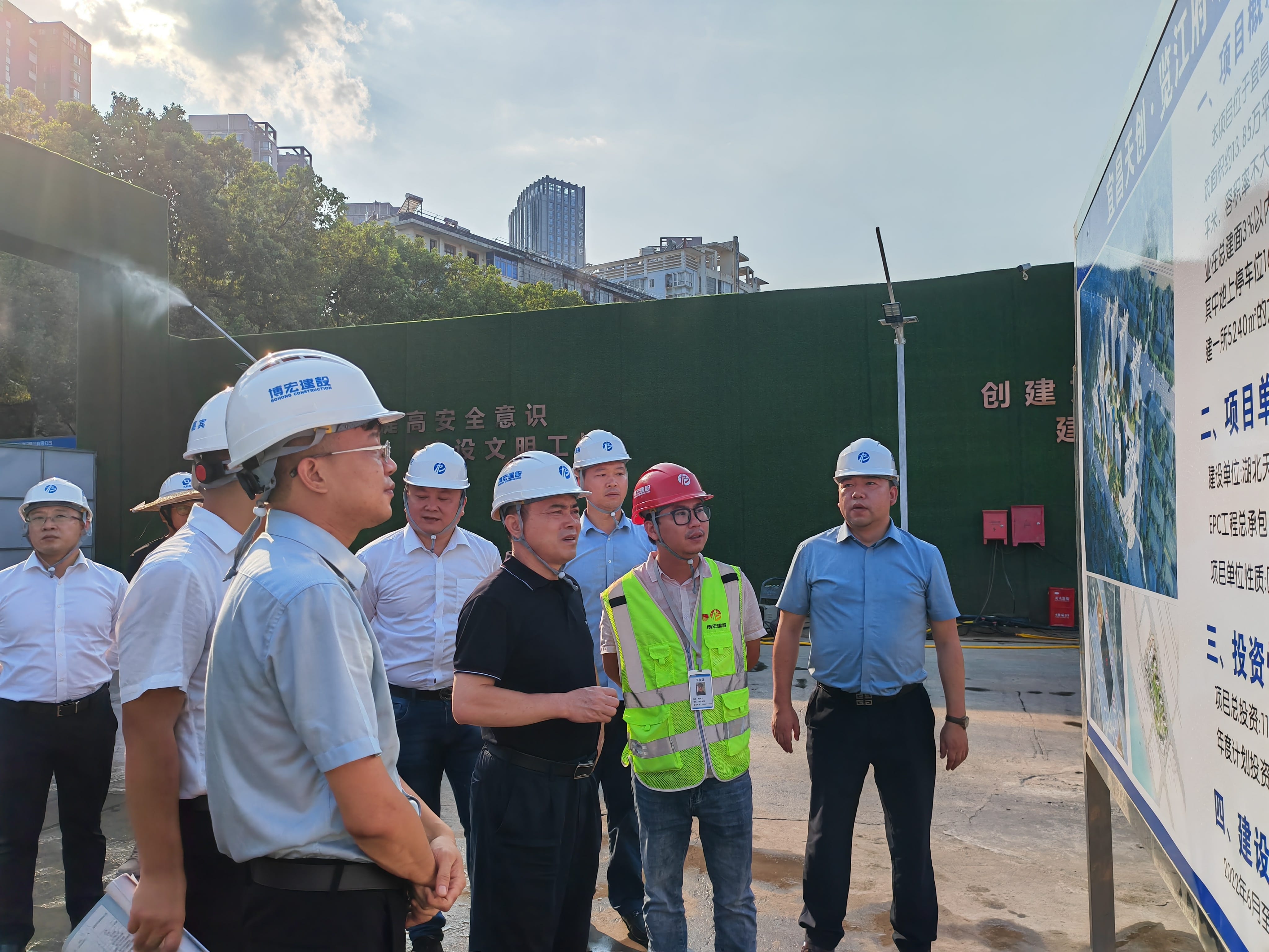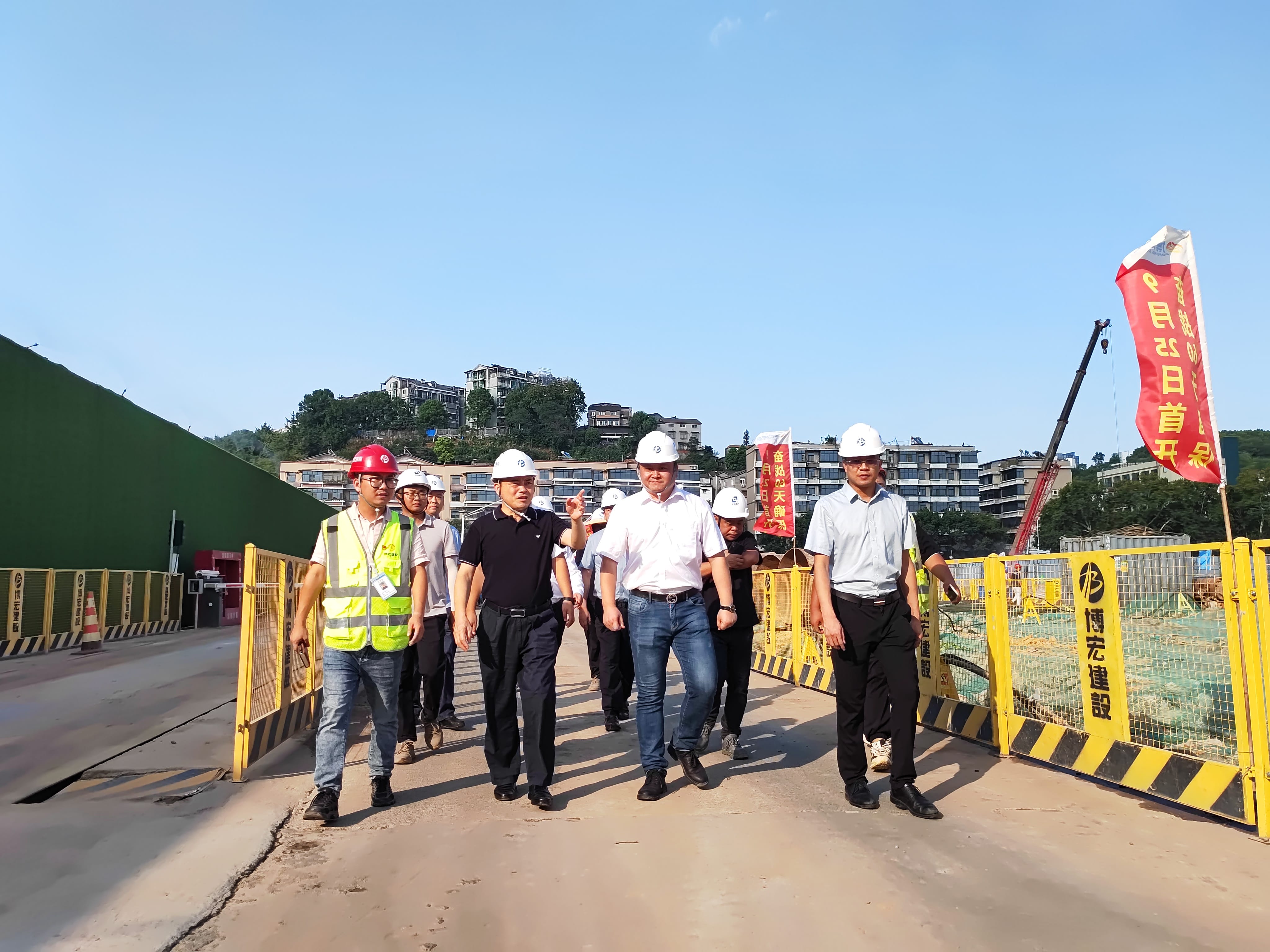 8月18日下午,漢陽(yáng)市政黨委書記、董事長(zhǎng)嚴(yán)悌文一行前往宜昌天創(chuàng)·攬?jiān)赂⑻靹?chuàng)覽江府項(xiàng)目調(diào)研慰問,向辛苦戰(zhàn)斗在外地市場(chǎng)一線的同志們表示了親切關(guān)懷與慰問,并希望大家在工作的同時(shí)注意高溫防暑和施工安全。經(jīng)營(yíng)公司市場(chǎng)開發(fā)部負(fù)責(zé)人馮寶貴、漢陽(yáng)市政天創(chuàng)地產(chǎn)公司副總經(jīng)理陳偉、博宏公司副總經(jīng)理李磊和王哲等陪同調(diào)研。