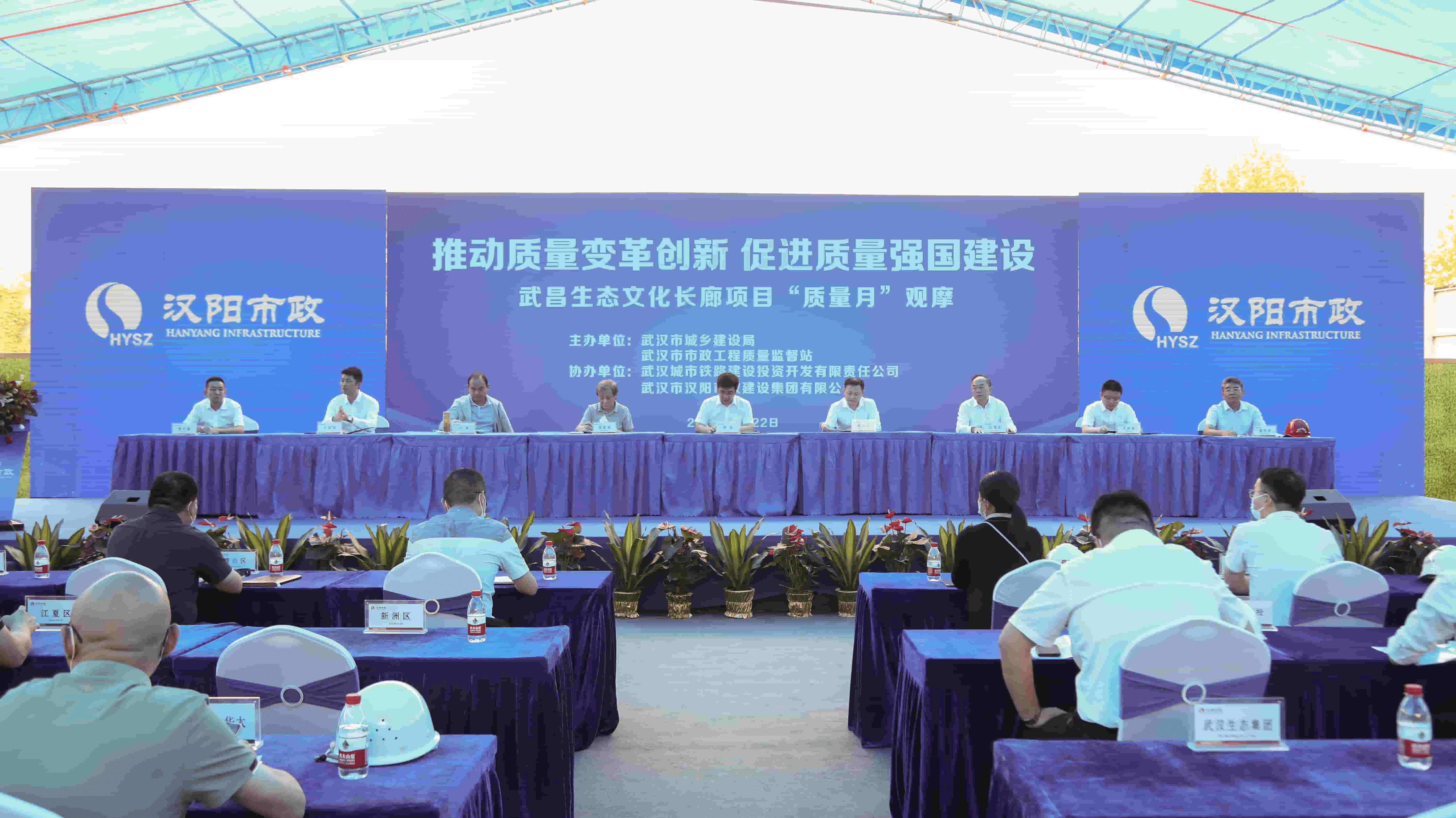 ? ? 9月22日上午,武漢市2022年“質量月”觀摩會在漢陽市政武昌生態(tài)文化長廊項目部舉行!本次市級觀摩活動由武漢市城鄉(xiāng)建設局、武漢市市政工程質量監(jiān)督站主辦,武漢城市鐵路建設投資開發(fā)有限責任公司、武漢市漢陽市政建設集團有限公司協(xié)辦。