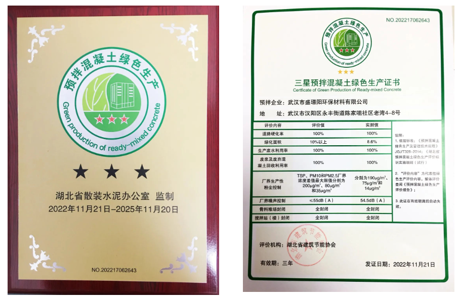 ? ? 近日,喜報(bào)傳來,漢陽市政盛璟陽公司順利通過評(píng)審程序,相繼取得了“三星預(yù)拌混凝土綠色生產(chǎn)評(píng)價(jià)證書”及“綠色建材三星認(rèn)證證書”,成為一家榮獲“綠色生產(chǎn)+綠色建材”雙三星認(rèn)證企業(yè)。