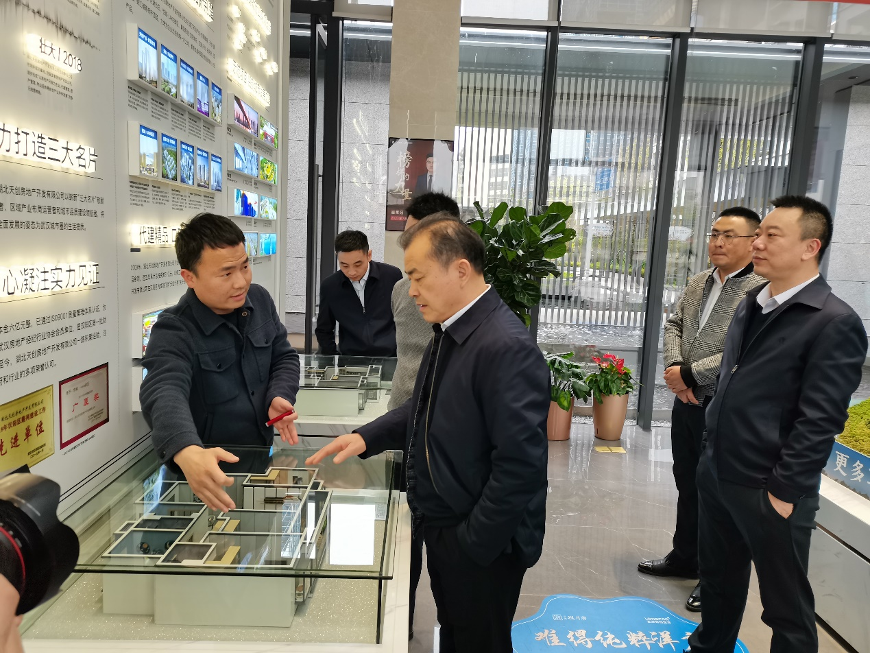 ? ? ? ? 3月21日,漢陽城建黨委書記、董事長嚴悌文一行蒞臨宜昌天創(chuàng)·攬月府及天創(chuàng)·望江樾項目現(xiàn)場,檢查項目建設(shè)、營銷等工作進展情況。漢陽市政集團總經(jīng)理王智高,集團常務(wù)副總經(jīng)理、天創(chuàng)地產(chǎn)董事長錢濤,集團總經(jīng)理助理彭駿;博宏建設(shè)董事長鄒勇,黨委副書記郭一清;天創(chuàng)地產(chǎn)副總經(jīng)理陳偉等陪同檢查。