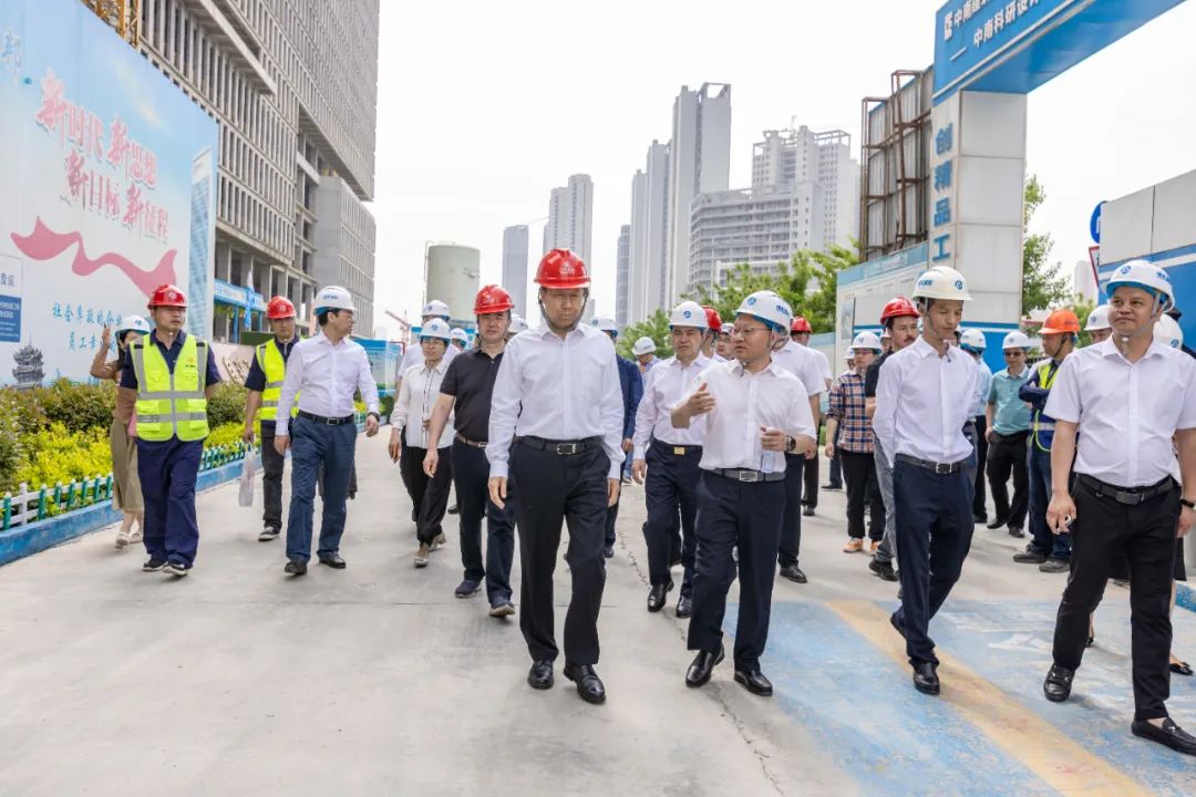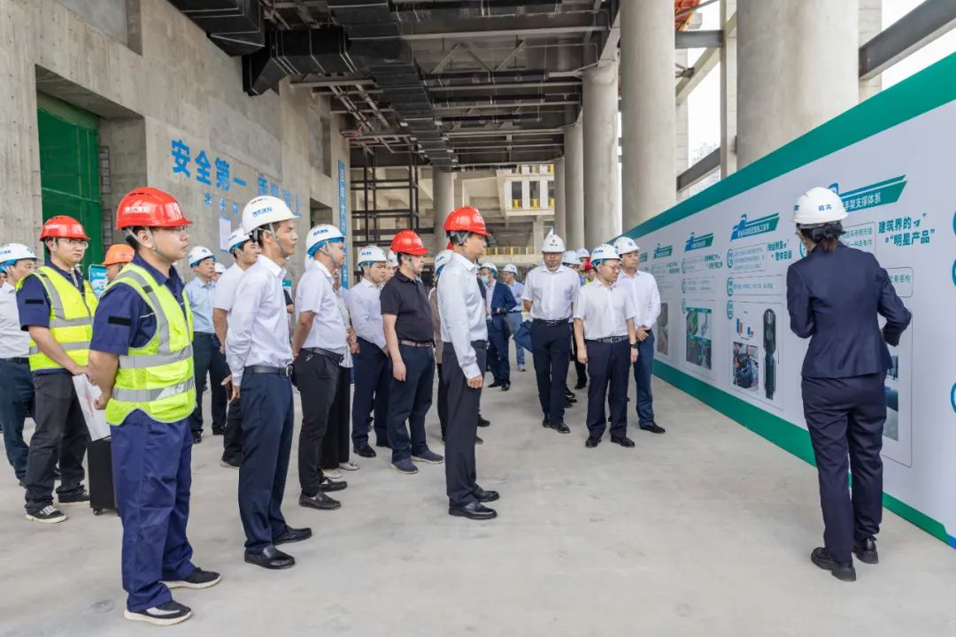 劉雪榮一行實地考察了中南科研設計中心施工現(xiàn)場,通過講解互動和實地觀摩,全方位了解了項目在新技術應用、安全質(zhì)量管控、標準化建設、智能化管理等方面的亮點與成效。調(diào)研組對施工現(xiàn)場BIM信息技術應用、構件二維碼上墻等創(chuàng)新舉措表示認可,充分肯定項目通過物聯(lián)網(wǎng)設備實時采集環(huán)境數(shù)據(jù),太陽能供電系統(tǒng)、盤扣支架通道,消防水系統(tǒng)與照明系統(tǒng)永臨結合等環(huán)保舉措,希望項目團隊繼續(xù)攻堅克難,為推動武漢打造“工程設計之都”作出更大貢獻。