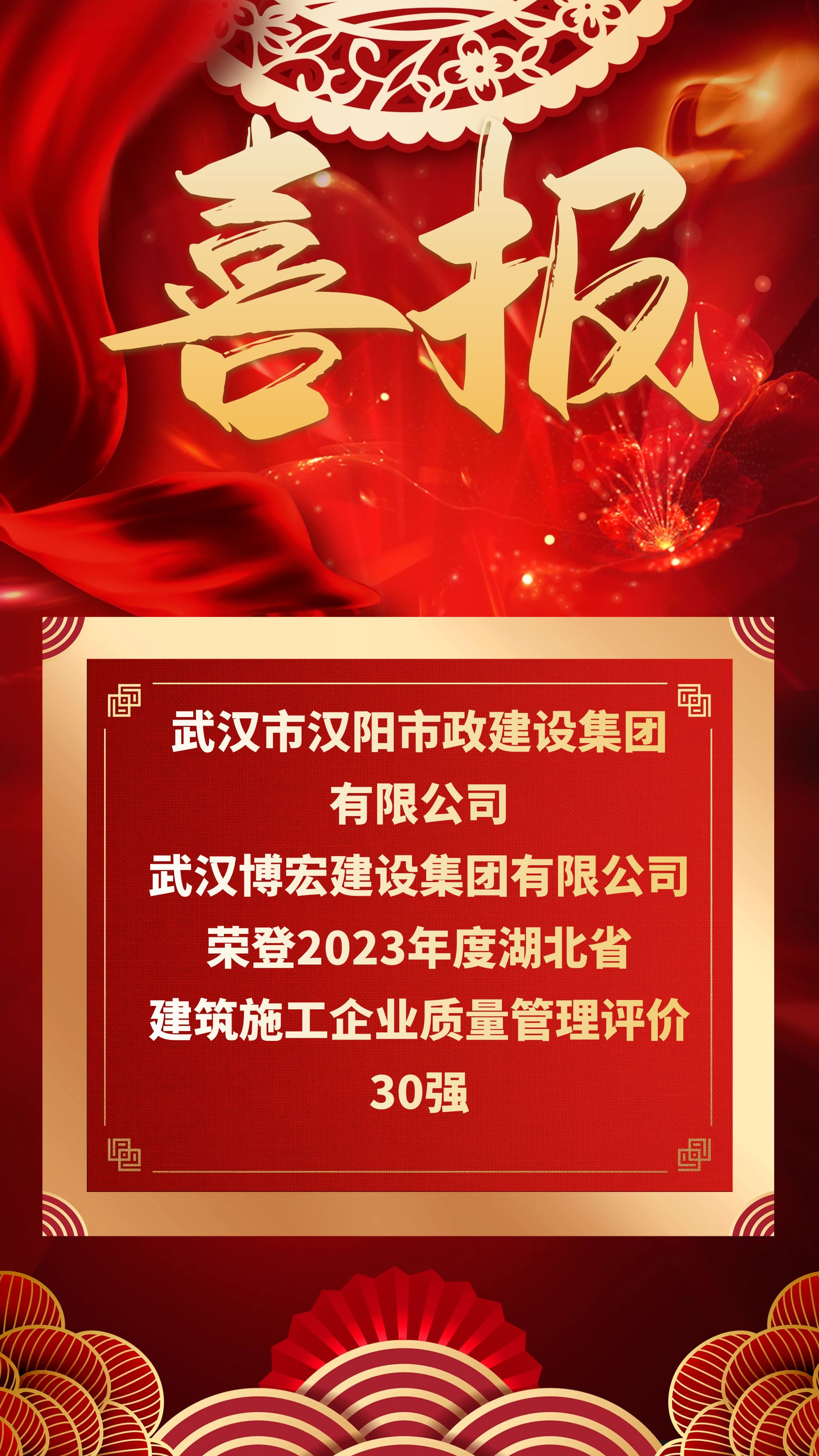 近日,湖北省建設(shè)工程質(zhì)量安全協(xié)會公布2023年度湖北省建筑施工企業(yè)質(zhì)量管理評價(jià)30強(qiáng)名單,漢陽市政及其下屬子公司博宏建設(shè)再次榮登榜單。