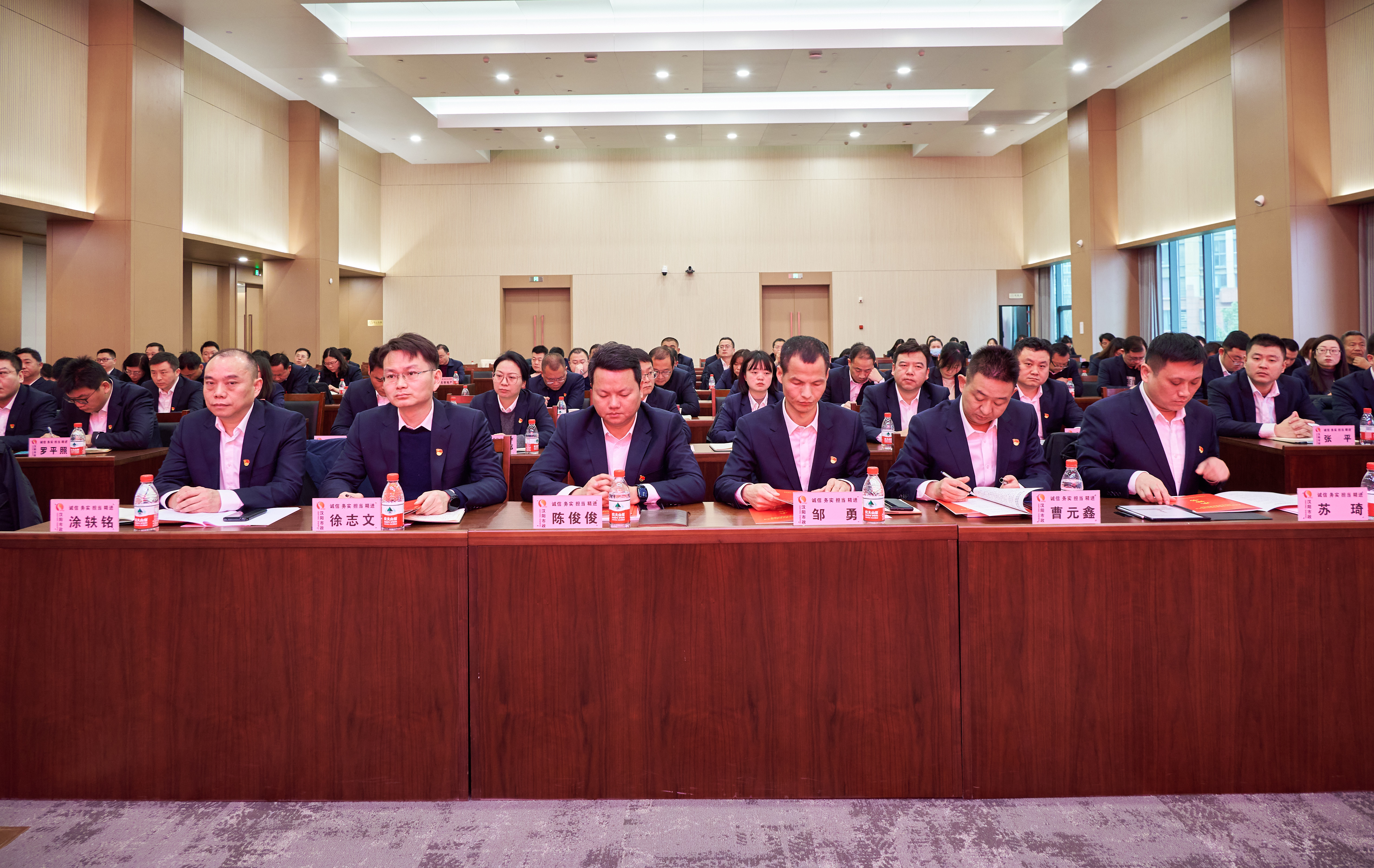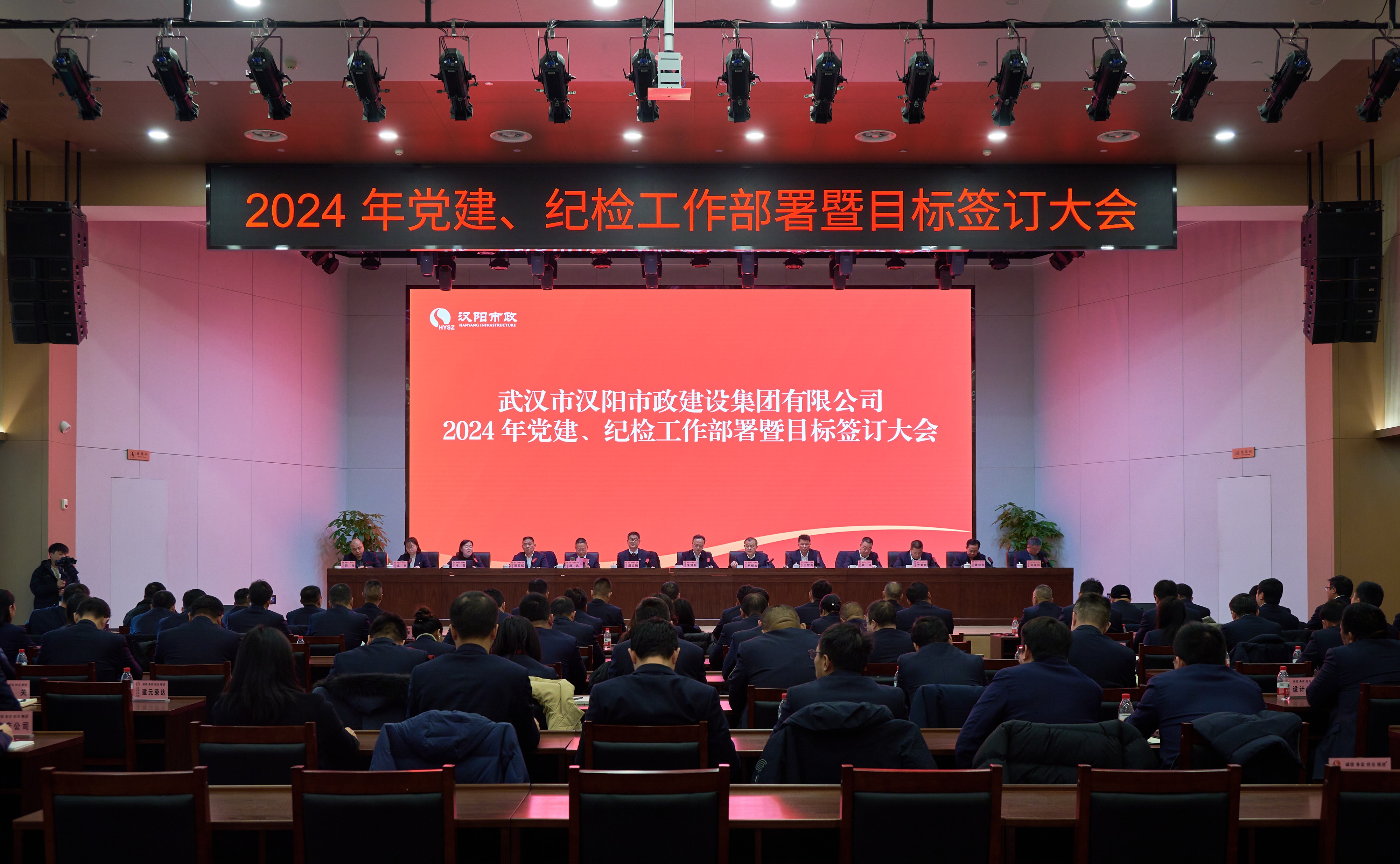 2月28日上午,漢陽市政召開2024年黨建、紀檢工作部署暨目標簽訂大會。漢陽區(qū)建設局局長朱源松蒞臨指導,漢陽市政黨委書記、董事長嚴悌文,副董事長虞志鵬,總經理王智高等黨委班子成員,集團及分子公司副科及以上干部、各部門負責人參加會議。