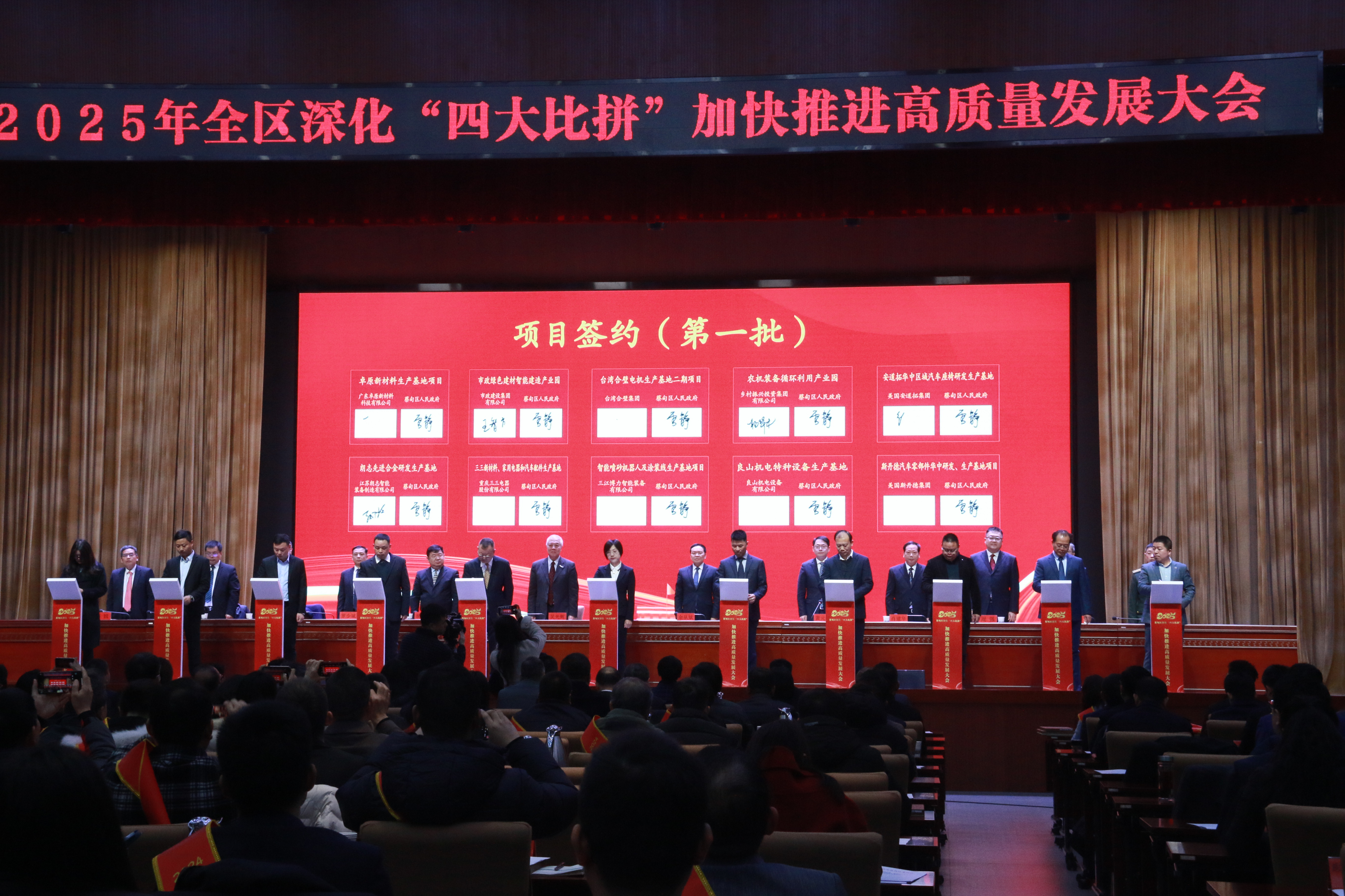 2月10日,蔡甸區(qū)2025年全區(qū)深化“四大比拼”加快推進(jìn)高質(zhì)量發(fā)展大會(huì)在中法論壇永久會(huì)址隆重召開,現(xiàn)場(chǎng)舉行第一季度項(xiàng)目集中簽約,漢陽(yáng)市政作為重點(diǎn)招商引資企業(yè)應(yīng)邀出席大會(huì)。集團(tuán)總經(jīng)理王智高代表漢陽(yáng)市政與蔡甸區(qū)人民政府簽署“漢陽(yáng)市政綠色建材智能建造產(chǎn)業(yè)園項(xiàng)目”投資協(xié)議。